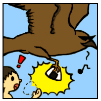 - トンビがご飯を狙っています。パラソルの下など、トンビから見えない場所で食べましょう。
