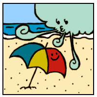 - パラソルは風邪が吹いてくる方向に向け、スコップなどで深く埋めましょう。離れるときはパラソルを閉じましょう。