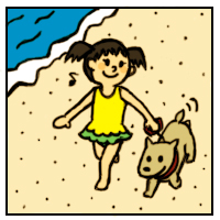 - ペットは海に入れません。浜でもリードを繋いで遊びましょう。