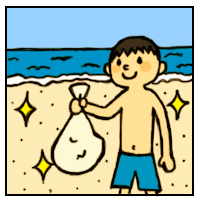 - ゴミは海岸を汚すだけでなく、ゴミでケガをすることもあります。必ず持ち帰りましょう。