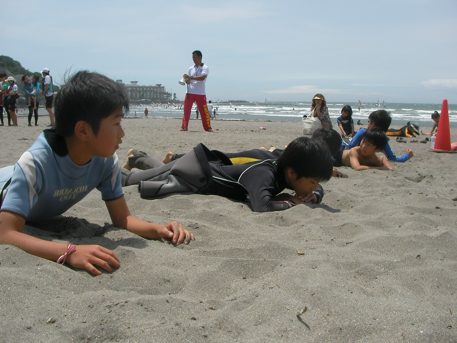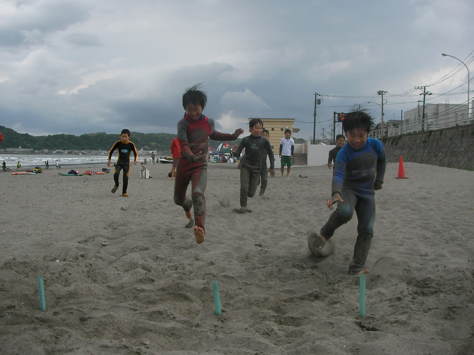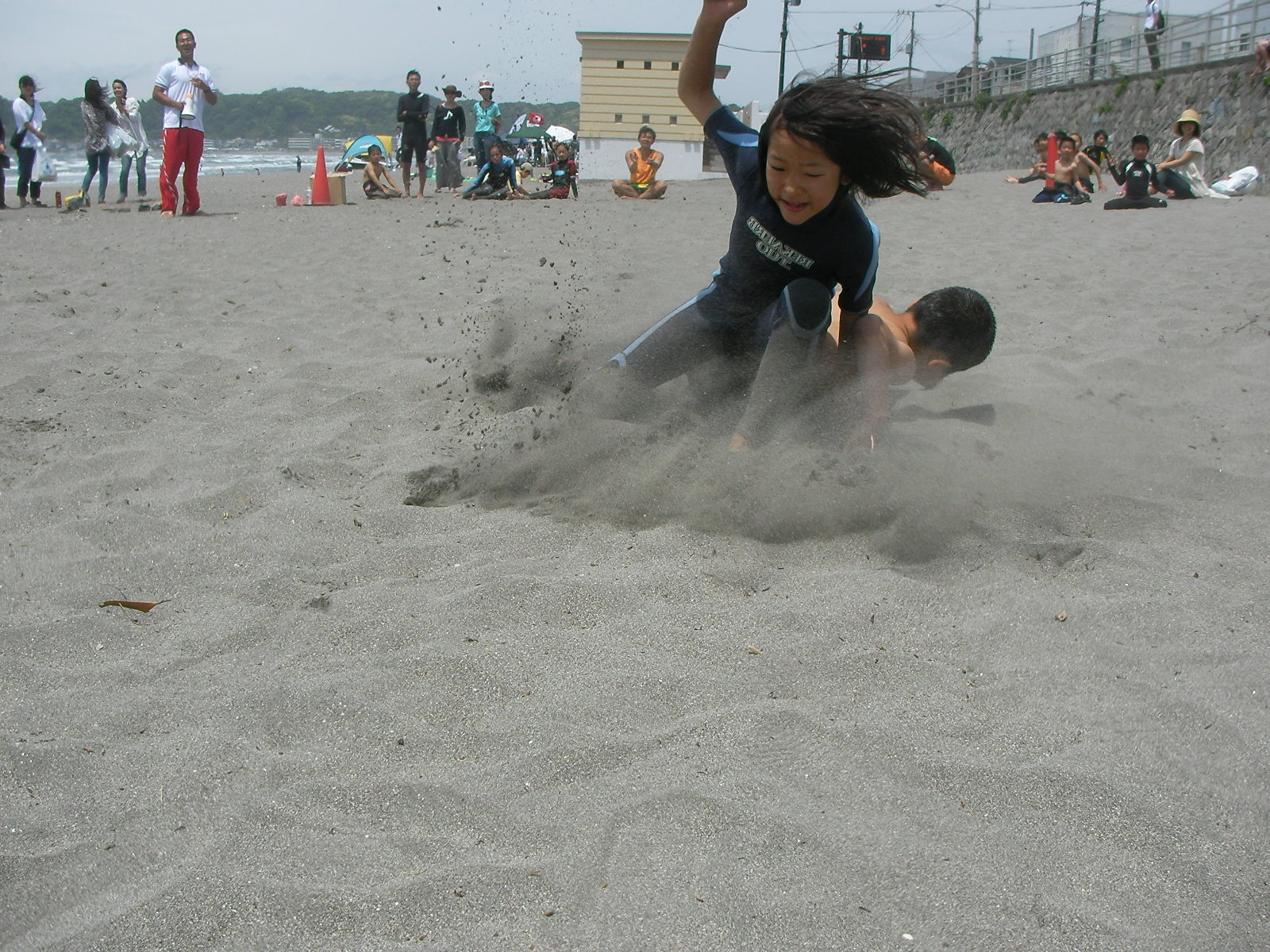 今年から鎌倉ライフガードプレゼンツ、子どもビーチフラッグス体験も行い