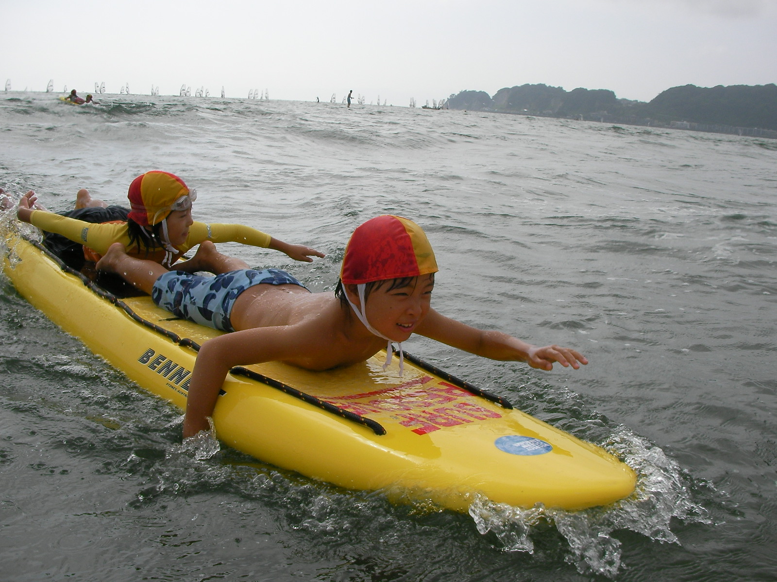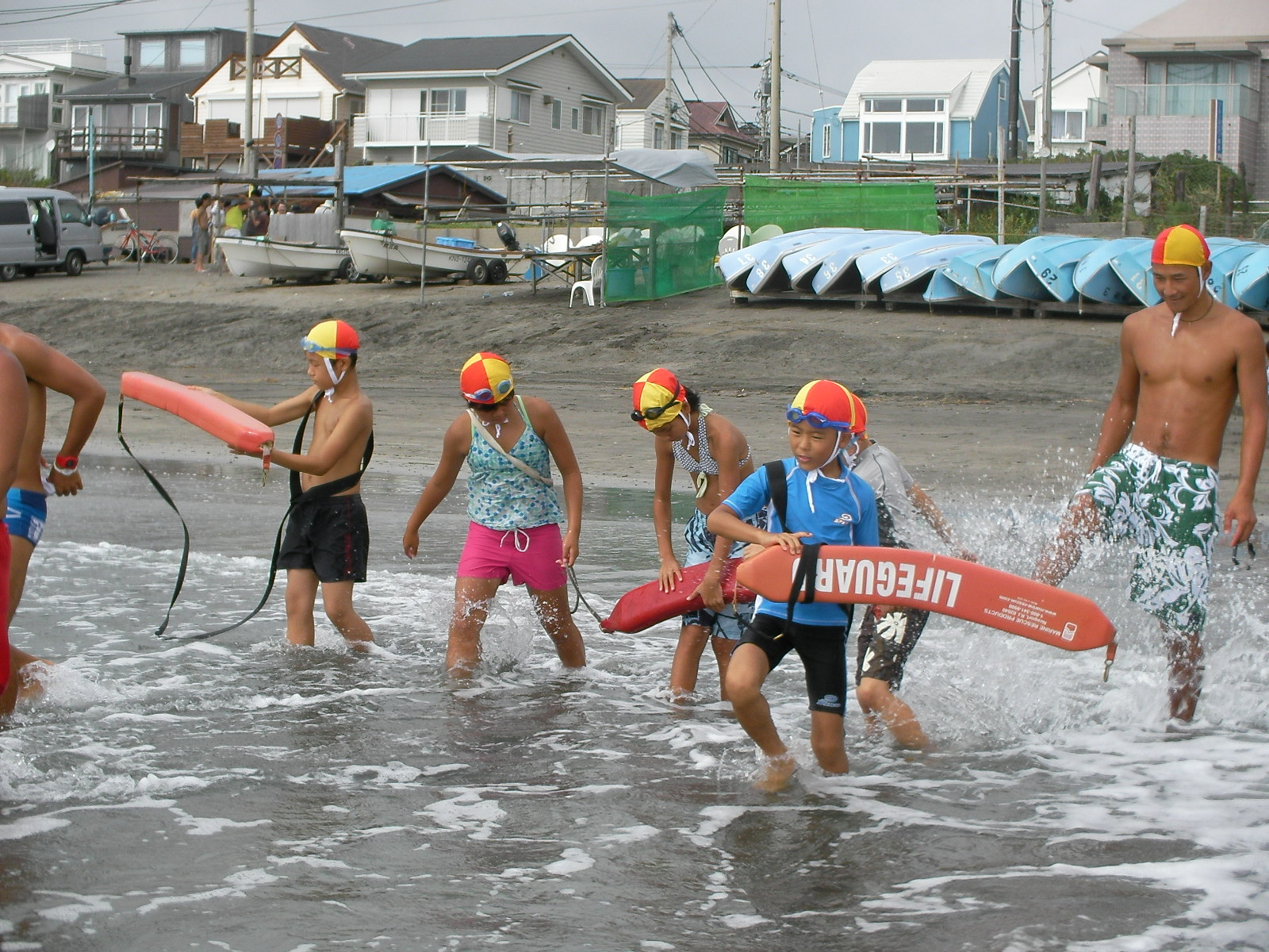 17名の子どもたちが参加し、夏の海水浴場で働くライフガード達とともに