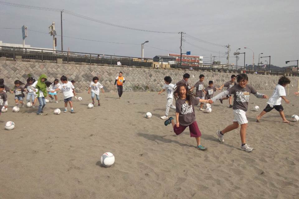 10月30日SOS海で遊ぼう!! 2011.11.01 NEWS一覧 10月30日に由比ヶ浜海岸でSOS海で遊ぼうが開催されました。 今回のビーチサッカーと心配蘇生法のレクチャーには子供、大人あわせて40名程の参加者が集まりました。 ビーチクリーンではより多くのゴミを拾おうと友達と競ったり、心配蘇生法を真剣な眼差しで見つめたり、何度転んでも立ち上がって必死でボールを追いかけたりする子供達の姿に元気をもらいました。 今回はあのブラジル代表ロナウジーニョ選手の財団に協力していただきました。直筆サイン!! 今年のSOS海で遊ぼうは今回が最後となりましたが、次回も海と人をつなげる存在として参加していきたいと思います。 林 亮太